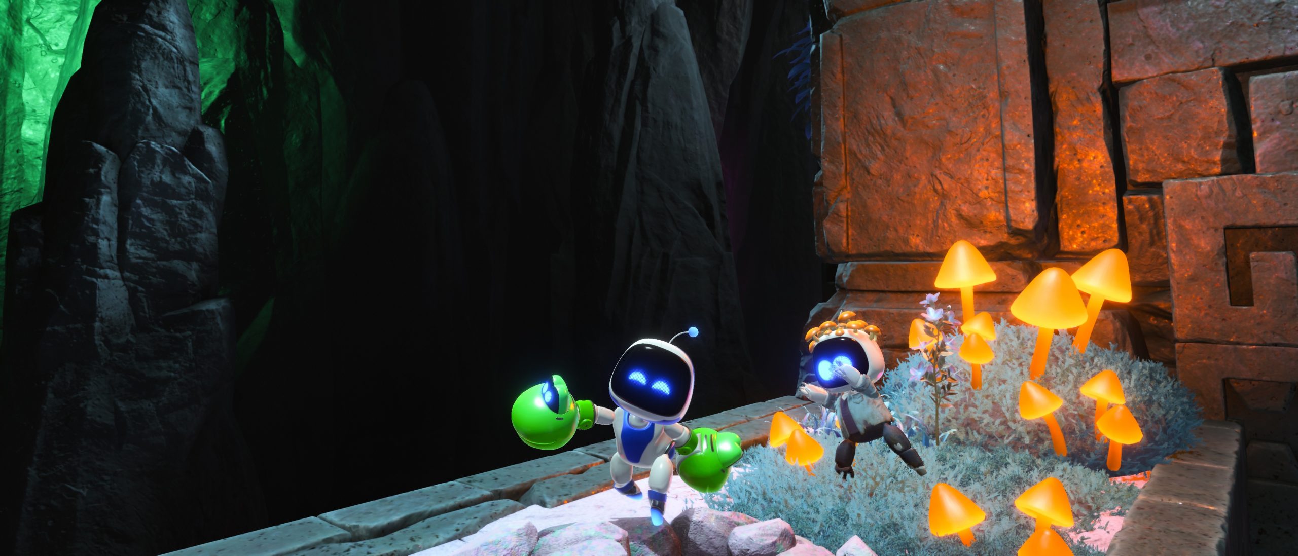 Et avez-vous remarqué tous ces champignons parfois présents dans les décors d’Astro Bot ? Eh oui ! Si le niveau dans lequel ces deux Bots VIP figurent n’a rien d’une scène de désolation, les éléments fongiques sont eux, bien présents. Décidément, il est difficile de s’en séparer ! En même temps, que serait The Last of Us sans ses mythiques infectés ? Nous retrouvons donc naturellement un Bot VIP contaminé par le Cordyceps, sous le nom de « Tête de Champi ». Mieux vaut ne pas le laisser nous attraper !