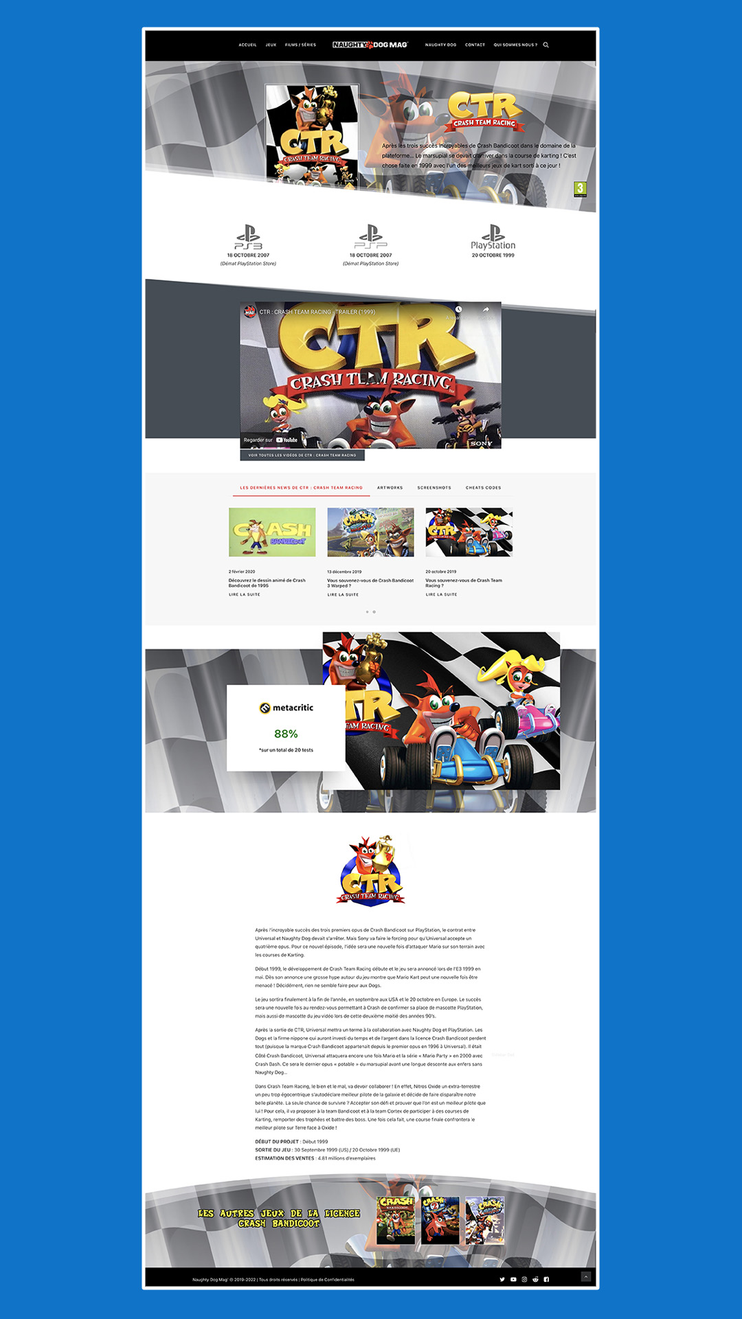 C’est sans doute l’une des pages les plus importantes : l’histoire de Naughty Dog. Plus de 38 ans d’histoire dans ces pages, de la création en 1984 sous le label Jam Software, en passant par le changement de nom en 1986 pour devenir Naughty Dog, la création de Crash Bandicoot en 1996, le rachat et la création de Jak & Daxter en 2001, l’arrivée d’Uncharted en 2007, l’incroyable The Last of Us en 2013… Jusqu’à, finalement, cette année 2022, qui risque d’être intense !