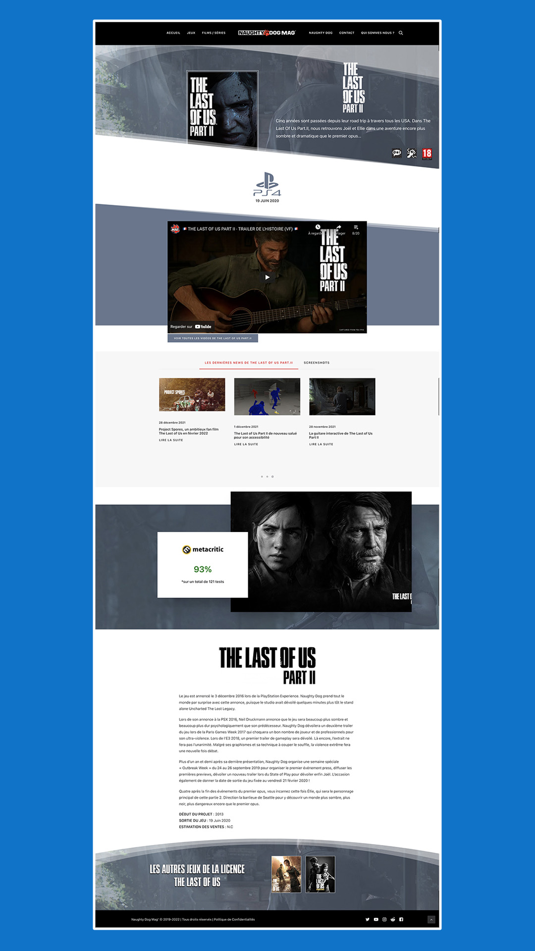 Les fiches « Jeux », « Films » et « Séries » ont, elles aussi, eu le droit à un petit coup de fraîcheur. À ce titre, vous retrouverez des fiches personnalisées sur chaque jeu, mais aussi sur le film Uncharted et la série The Last of Us (HBO). Au total, ce sont 26 fiches uniques qui vous attendent pour en apprendre encore plus sur les jeux et les projets liés à Naughty Dog !