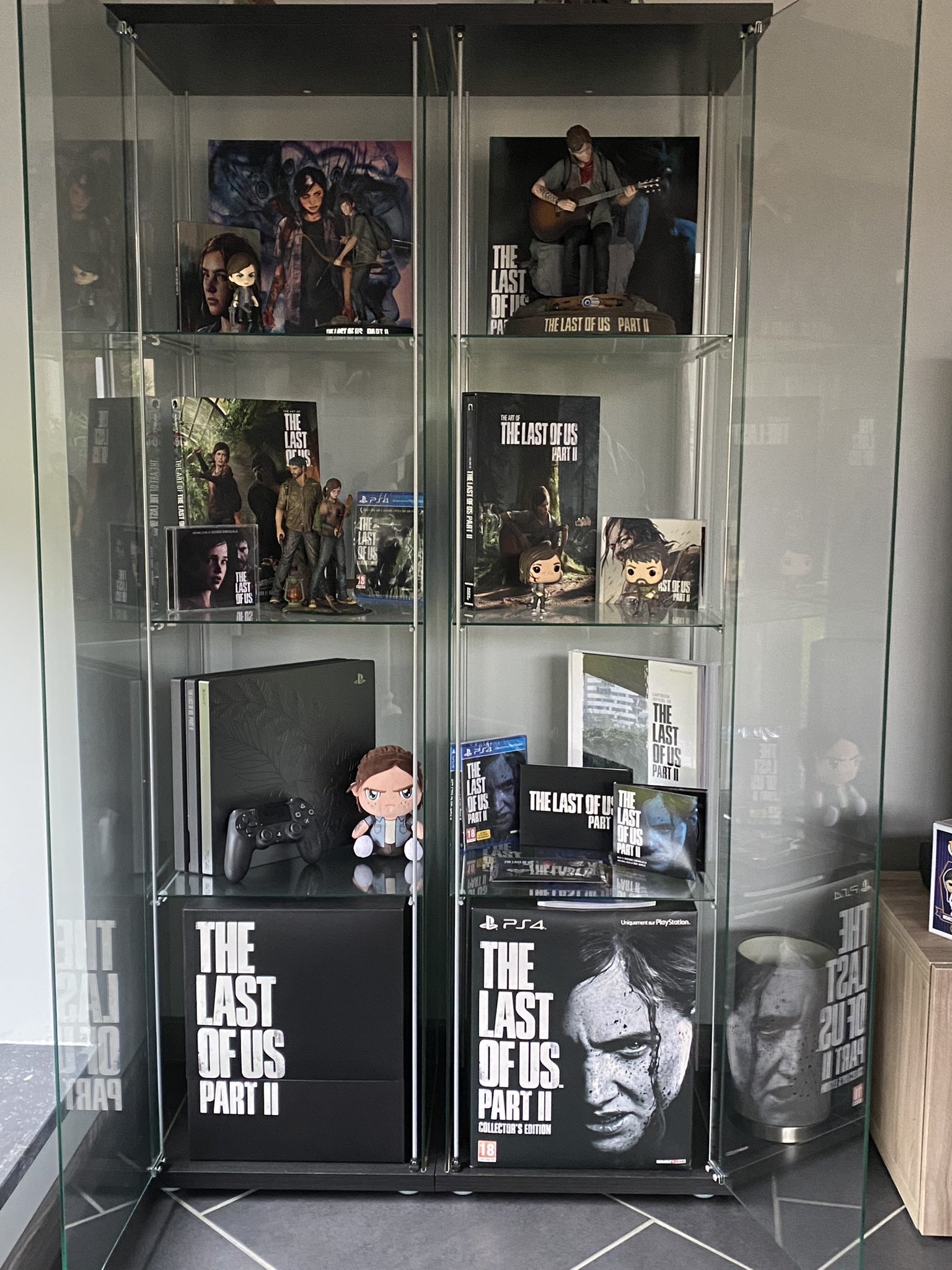 J’ai commencé à collectionner la licence peu de temps avant la sortie de Part II. Je collectionnais raisonnablement au début, mais c’est vite partie en vrille au fil du temps. Un de mes délires est de récupérer le premier opus encore sous blister dans toutes les langues du monde où le jeu a pu sortir, que ce soit les versions PS3 ou PS4. Avec Part II je suis resté sage. Ensuite ma pièce préférée je ne saurais dire… Entre l’édition Ellie du collector de Part II ou le coffret de quatre vinyles du premier opus, ou même les carnets d’Ellie et Abby, mon cœur balance. Mais je vais rester sur le collector qui contient le sac à dos d’Ellie. À l’avenir, ma collection sera encore plus grande et plus fournie. Je pense aussi rajouter de la décoration supplémentaire et des lumières.