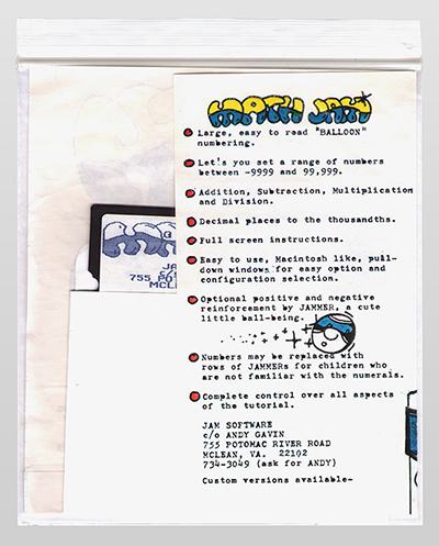 Un an plus tard, en 1985, Andy et Jason vont commencer le développement de leur tout premier jeu. Ils vont commencer à le vendre à des écoles jusqu’au début de l’année 1986. Ils publient eux-mêmes le jeu sur des disquettes. Il s’agit de Math Jam pour Apple II. Ils vont se charger eux même de l’édition du jeu et le distribueront avec des instructions photocopiées dans des sacs plastiques. Il s’agit d’un jeu éducatif pour aider à apprendre les maths. Mais leur petit marché va vite s’effondrer lorsque des enseignants vont se plaindre et demander aux deux jeunes adolescents de faire expertiser leur jeu afin d’avoir les autorisations pour le vendre. Un objectif que les deux amis vont abandonner pour directement développer leur deuxième jeu.