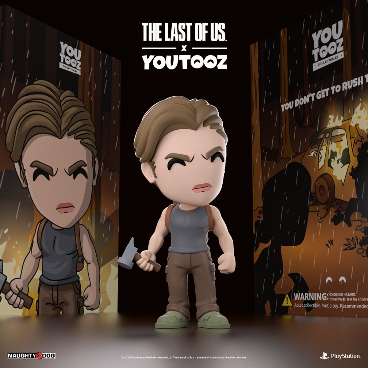 Pour compléter ce set, Youtooz propose également une figurine de l’antagoniste de The Last of Us Part II, Abby. Elle apparaît avec un marteau à la main, un accessoire si emblématique du personnage que Neil Drcuckmann, le co-créateur du jeu, se l’est fait tatouer. Il voulait ainsi rendre hommage à cette guerrière endurcie que les téléspectateurs commencent maintenant à découvrir dans la saison 2 de la série The Last of Us (HBO).