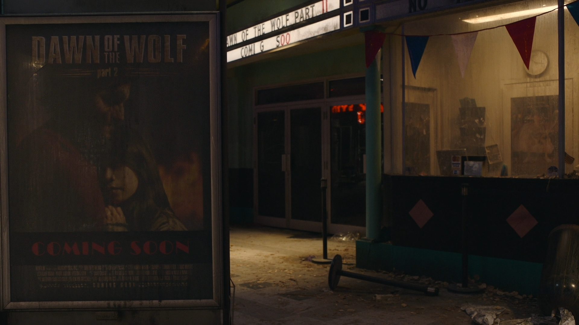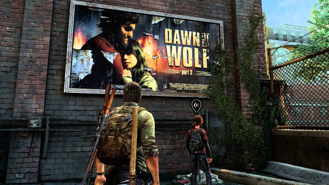De fait, dans le centre commercial, Ellie et Riley passent devant une affiche du film Dawn of The Wolf: Part 2, montrant un couple formé d’un homme-loup et d’un jeune femme. Le clin d’œil à The Twilight Saga: Breaking Dawn – Part 2 (Twilight, chapitre V : Révélation, 2e partie en France), dernier opus de la franchise au cinéma, est évident. Il se trouve qu’on peut voir cette même affiche dans le jeu.