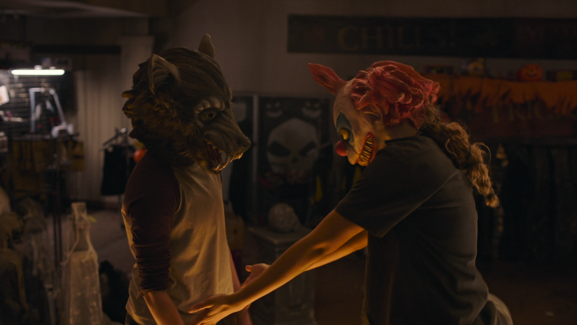 La soirée d’Ellie et Riley se poursuit dans un magasin de déguisements et de décorations pour Halloween. Dans le DLC, c’est en fait l’un des premiers lieu qu’elles visitent dans le centre commercial. Ici, HBO a opté pour un mélange de deux séquences, combinant l’essayage de costumes avec celle de la danse.