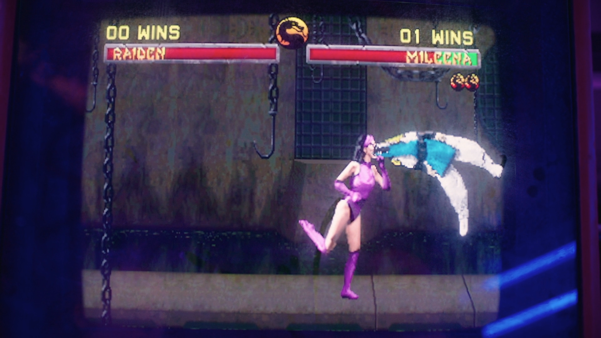 Ellie l’avait déjà évoqué dans l’épisode 3, Riley l’exécute ici : il s’agit du « Fatality » de Mileena, soit son coup final en combat. Après avoir réussi un enchaînement de touche dans Mortal Kombat II, le personnage dévoile sa bouche monstrueuse pour avaler son adversaire et ne recracher que ses os.