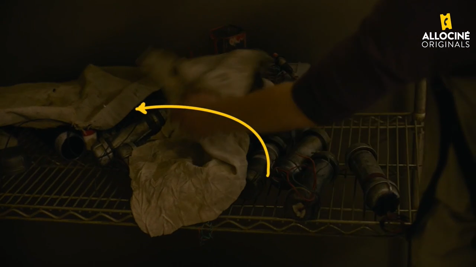 Enfin, et toujours dans la même trempe, le torchon qui recouvre les bombes artisanales de Riley, change de place à différentes reprises selon les plans.
