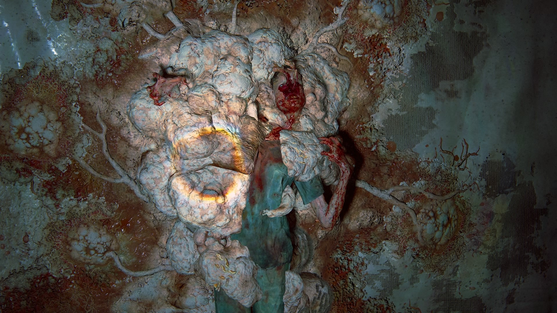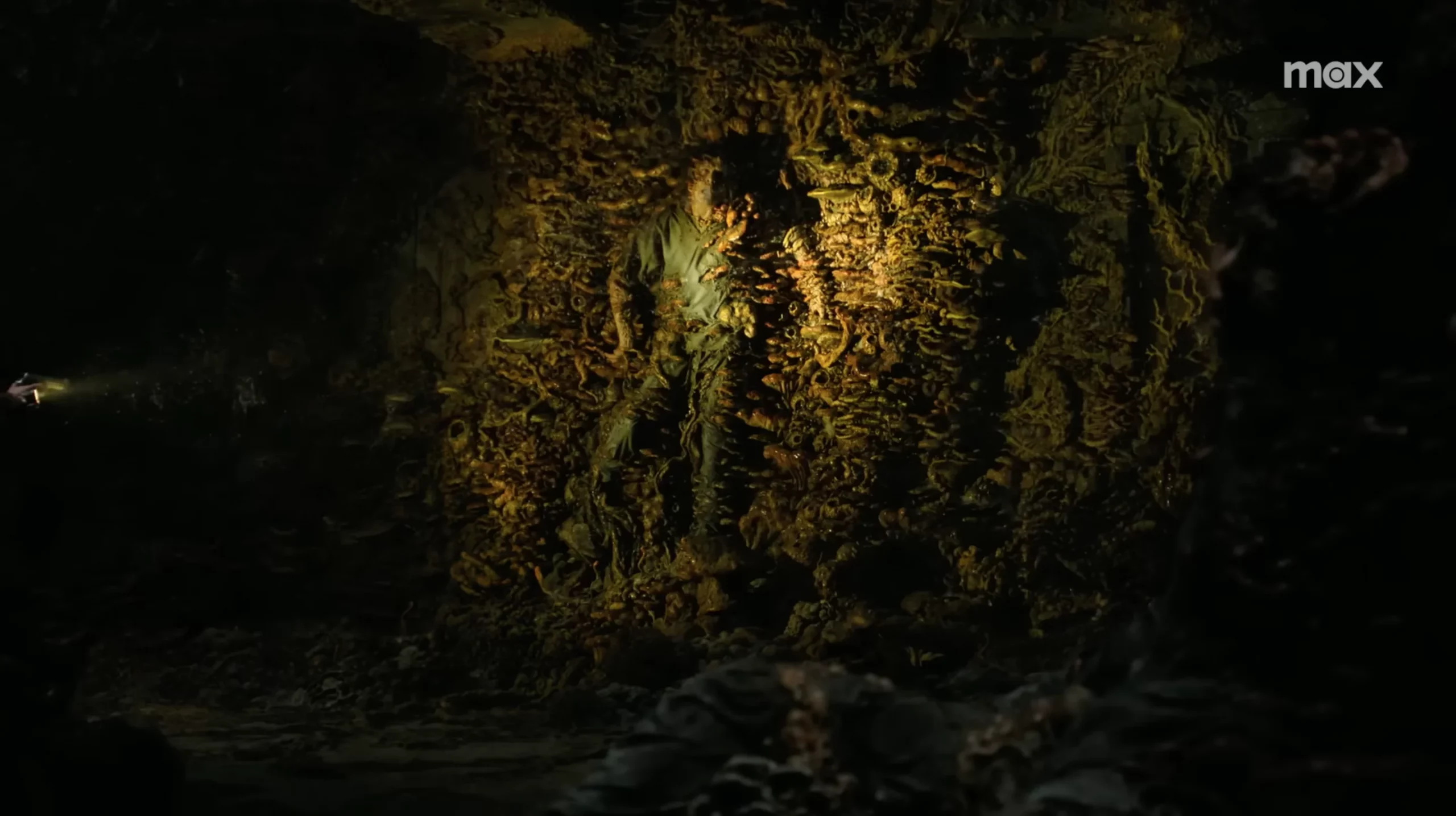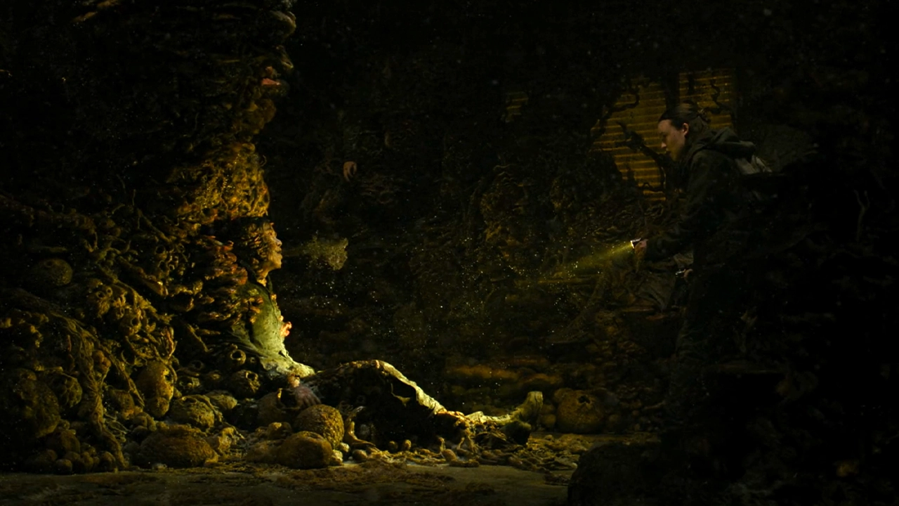 En effet, HBO a bien retenu ce à quoi ressemblait les environnement infestés de Cordyceps dans The Last of Us Part II. Ainsi, on retrouve cet épisode 5 deux personnes, deux membres du WLF, qui ne font plus qu’un avec la matière fongique. L’une d’elle est littéralement accrochée à un mur par les excroissances. On s’attendrait bientôt à ce qu’il se décroche du mur pour sauter sur l’héroïne, comme dans le jeu.