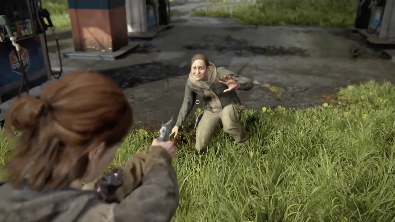 Plus tard, Ellie part en expédition avec Jesse. Ils croisent sur leur chemin un Séraphite traqué par des membres du WLF. Il est forcé de se mettre à genoux pour se rendre. Malgré l’aspect contraint, cela peut rappeler The Last of Us Part II.