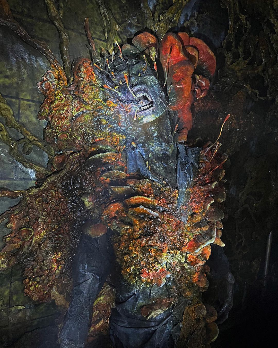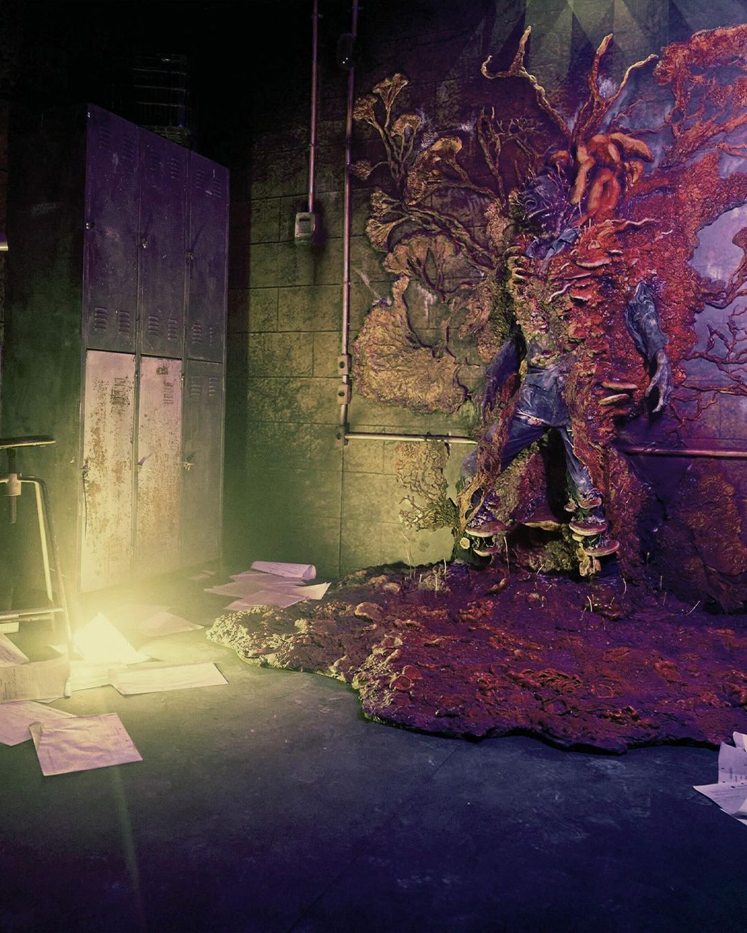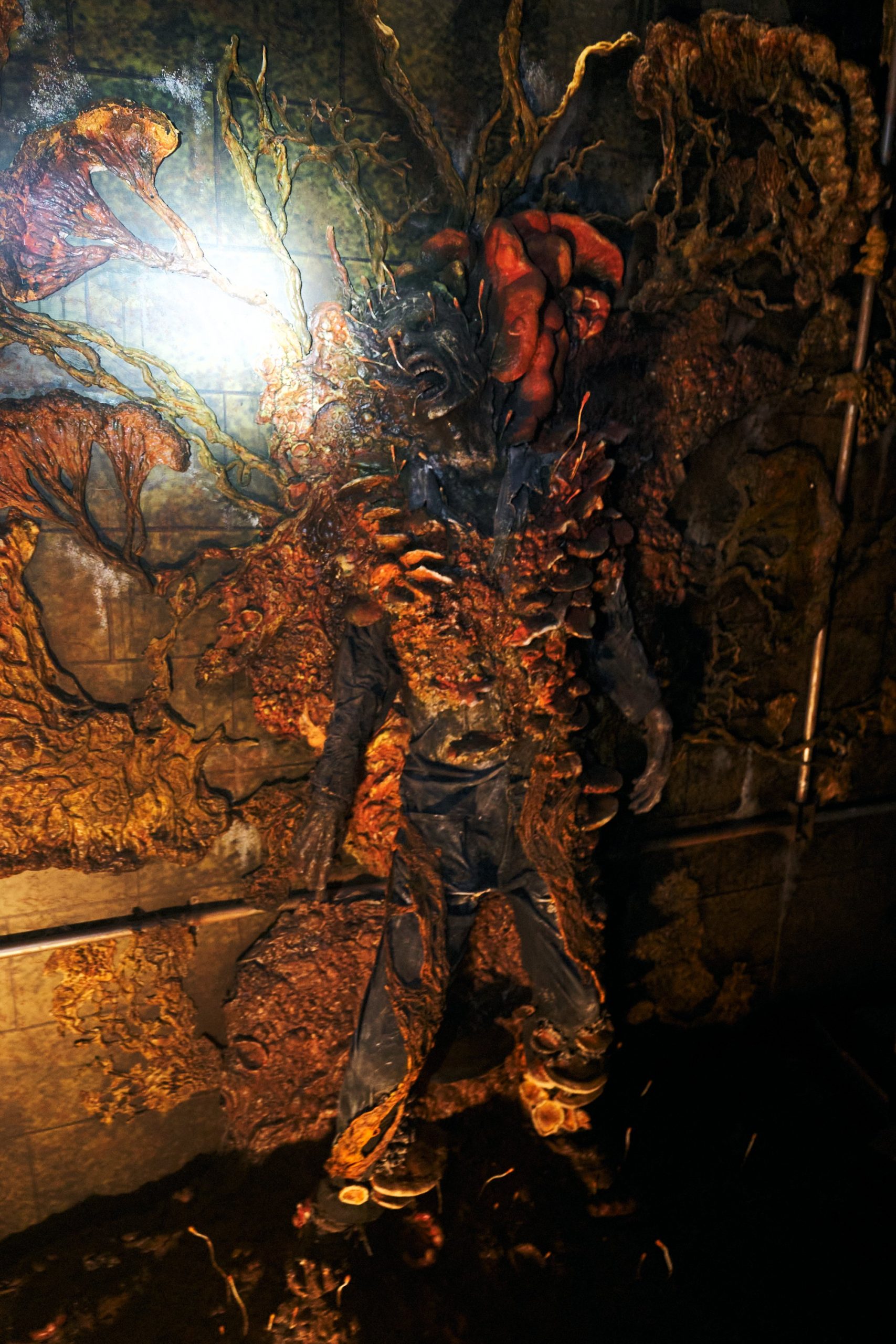 Mais le clou du spectacle était, sans nul doute, l’habitant de ce lieu… Eh oui ! Le cordyceps s’est invité dans le décor autour d’un corps humain présentant des signes d’infection :