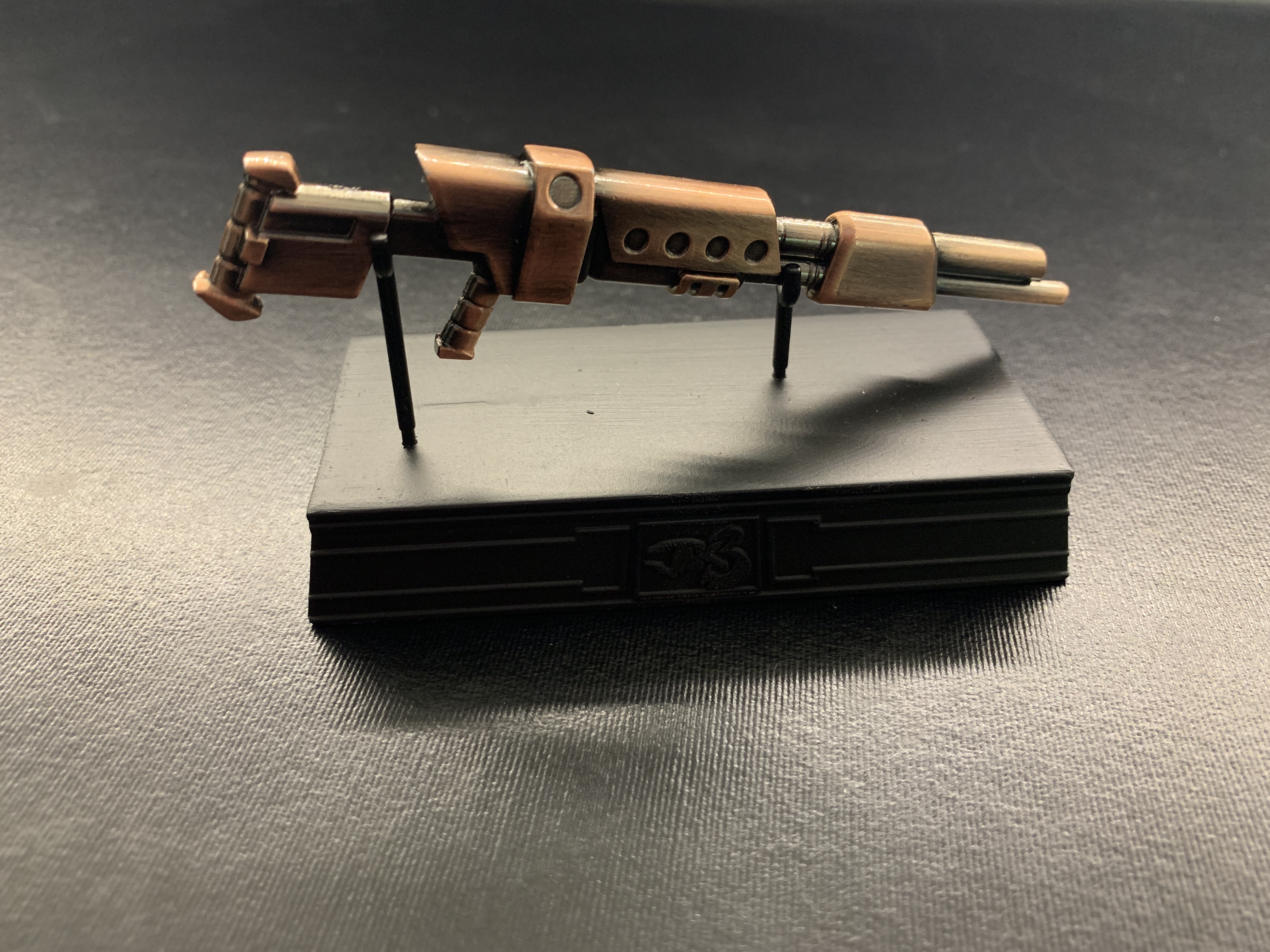 La carte mémoire est en réalité une clé USB de 16Gb avec le logo transparent « Limited Run » sur le recto, et une patte de Naughty Dog noire sur le verso. La réplique de l’arme de Jak est assez lourde et semble être d’extrêmement bonne qualité ! Visuellement elle est sublime, et nous disposons d’un support pour la poser.